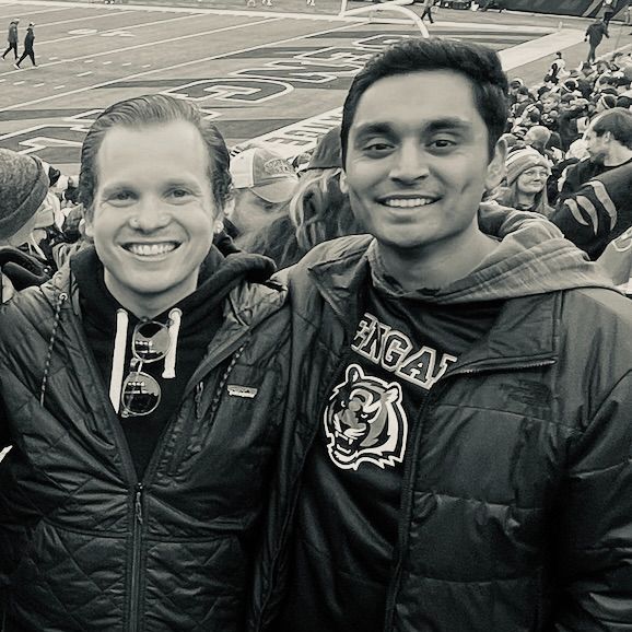 Hugh and Shray's friendship blossomed when they became Model UN co-presidents in high school. Since then, Hugh has been a close confidant of Shray's, and they remain focused on their clear and very achievable goal to have Hugh own and Shray coach the Bengals side by side one day. In the meantime, they will work to win their fantasy football league every year (despite never winning to date), and continue to thrive as the two members of their high school friend group to currently live on the Northeast Coast. They will reunite once more back in their home town of Cincinnati, where their friendship first began, and are so excited to be together on Shray and Lalitha’s special day.