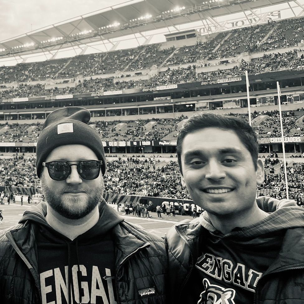 Shray and Jordan have been friends since middle school. Their friendship blossomed in high school as they both played tennis together (although Jordan was way more athletic than Shray!), and they've remained close friends ever since. After Shray graduated and left Ohio for college and medical school, anytime Shray returned home for a visit, Jordan would introduce him to all the new, exciting places that had popped up around Cincy, and they stayed connected no matter where Shray moved to. Their friendship is built on a shared love of football, tennis, and being a "Bad Boy", with Shray's other groomsmen Hugh, and the boys always reconnect in Cincinnati each year. Shray will always be jealous of Jordan for winning their fantasy football league, but he will put aside his jealousy for just this weekend in order to have on of his oldest friends be by his side on his special day.