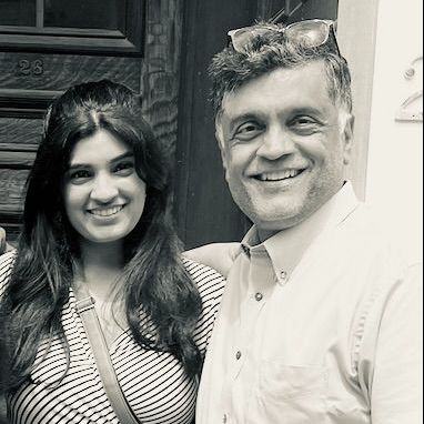 The best memories Lalitha has with her Appa are the unending amount of car rides she would have as a kid, where he would play her his favorite classic musical artists and teach her about the blues, rock, pop, and everything in between. From singing along to Coldplay, Sting, and the Dave Matthews band to jamming out to J.J. Cale, Billy Joel, and Eric Clapton, Lalitha's love of musical art is 100% learned from her Appa! Not only did he bring her into the world of music, but he also imparted his deep love of film (there's nothing like a movie night at the Ramaswamy household!!). Every new Christopher Nolan film release is a bonding experience for them both. If you get a moment with the Father of the Bride this weekend, ask him about his favorite films or classic song and which of them he enjoyed watching or listening to the most with his darling daughter.