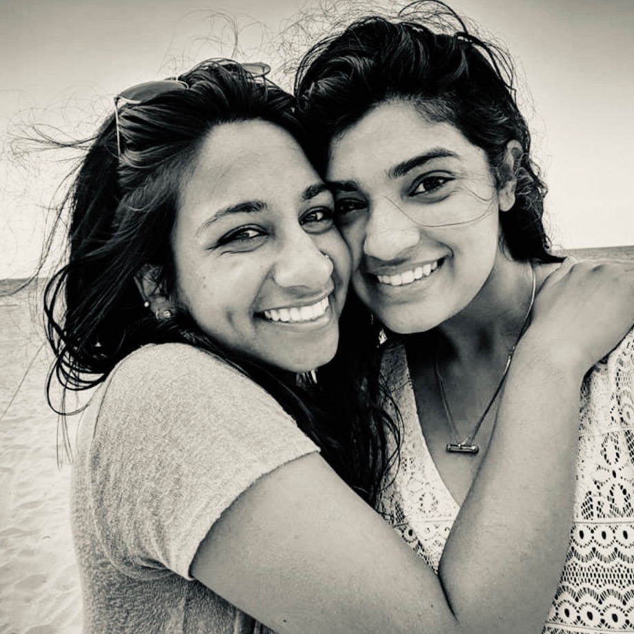Arooshee and Lalitha became fast friends through their college singing group, Maize Mirchi. Within a year or two of graduating college, the two of them, along with Krsna and Anu, formed what they affectionately call "The Cysterhood" - which remains a core source of love and strength for all four girls. Over the last several years, the Cysterhood has been a space to share challenges, celebrate milestones, talk through difficult phases of life, and simply be as silly, supportive, and wild as they want to be. Arooshe and Lalitha built an especially beautiful little sister-big sister relationship, and this bond was made even stronger when they moved in together for the summer in 2021, where they created a wonderful little life in Charlestown MA - just a few months before Shray and Lalitha went on their first date! Since then, they have seen each other through so many highs and lows, but even through the roughest of times, they've maintained such a special and supportive sisterly bond. There's no one better human to complete Lalitha's quintet of bridesmaids!